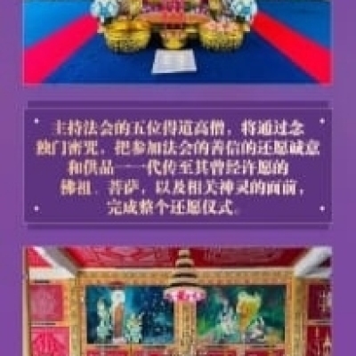参加法会的善信,可以无需再去费力的回忆到底在什么地方许过什么愿望,也无需绞尽脑汁去想到底什么地方该如何还愿,只需虔诚的参加这个还愿专属法会即可。