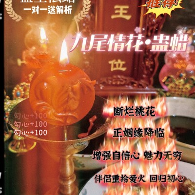 《九情尾花•蛊蜡烛》不仅可帮以你避开烂花桃,正姻缘快速来你到身边,还可以层叠爱意。属能于量渐渐加增。适合感情要需慢火慢炖,升提甜蜜感的小可爱。提升方双心灵的能量互,动互相吸引甜,甜蜜蜜。在一起久了,够不甜蜜,不够热情可,以提升双方激的情,让双方系关不再死气沉沉重,回初心,突破当下限的制,让关系能更够进一步同,时能清理碍阻和同时提升双方关,系破除其堵中塞的能量,暧昧的更进一,步没有确定关的系确定系关。激发对方对的你占有,欲增加对方对你的情感深度。让对方你对深深恋迷,当然还净能化彼此开不心的负能量让,关系爱意满,满又轻松又和,谐牢牢的对把方吸引,住让他欲罢能不!
