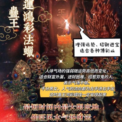 人体气场的强弱随运势高低而变化,财富外漏,进财困难,招惹穷鬼的人。表示气场不够。不分男女,人气的流向都为左手进右手出,这时不妨点此法蜡,达到增强运势、招财进宝的目的。财富进府纳库适用于各种赌^_^博彩^_^票。投资。牛牛,百家^_^乐,买^_^马,六^_^合彩,二十一^_^点,炸^_^金花,可谓如虎添翼。发如猛虎,在最短时间内最大限度地催旺风水气场财运。常可日进斗金。威力强大,利用此法赢钱大至数万,建议三支起点,五支,七支,效果甚佳