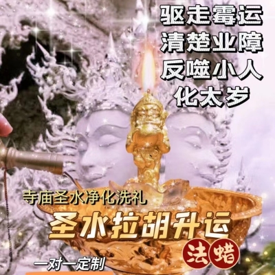 【圣水拉胡升运法蜡】一对一定制加强特别版,首先为客户用寺庙圣水净化洗礼身上不好的磁场。再通过师傅代点法蜡