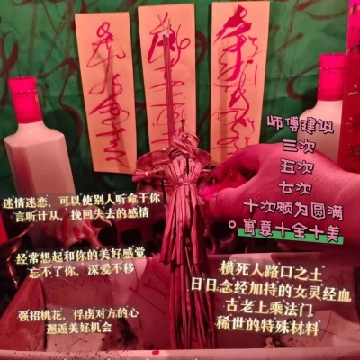 请示神灵,唯有巫派。利用人偶。发吊魂令,分别吊魂魄附体草人草人放在一起进行施法,让其三魂不断的交融当三魂相互交融后,将所调之魂放回之后产生和和效应。以此利用生辰八字主观男女感情。利用自身法力来强行施法。必须用阴料来催法。需要纯黑色的猫眼睛,取下眼球作为施法材料。十字路口的土。经常横死过人的路口树枝,。夜半子时开始做法!