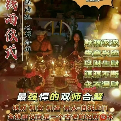 所谓金钱雨,财从天降,如大雨倾盆而下,形容钱财满地,步步生金❗️此仪式🉑️使财源滚滚,生意兴隆,以财生财,源源不断,永不漏财❗️最强悍的双师合璧❗️钱财 机会 机遇 贵人-自找上门❗️金钱雨仪式是一个古老的招财㊙️术不是一位师傅可以独自完成的❗️