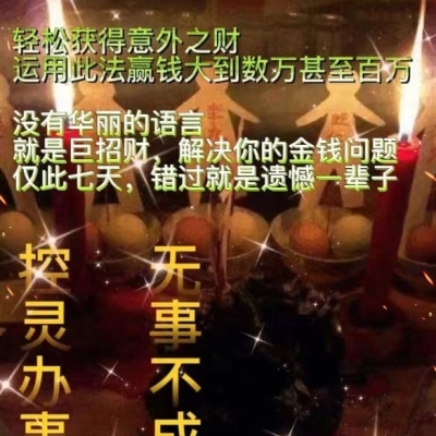 正财偏财都能入门。。此法门是通过五行演变五毒。去进行聚财转运。东蝎子南蜈蚣。西毒蛇北蟾蜍。师傅祖上祭炼上百余年。有此法门。一般人都很少知道。此法门聚财特别快,有的很多富商。到一夜暴富。蝎子能运正财。无功能运偏财。毒蛇带财。蟾蜍能吐财。