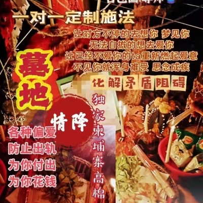 🔮此法事师父在墓地设坛 请祖师爷和土地神把对方拉在一起, 师父把两人的照片放在两个人偶中间绑上, 然后驱铃进行加持🉑让被下降者喜欢你, 想着你, 在梦里梦见你, 想主动联系你, 心甘情愿为你花钱, 减少两个人之前的争吵, 爱情和睦, 感情路上减少坎坷, 增加恋爱两人的缘分程度, 使破碎的感情得到修复, 重新回到起点, 进入爱河, 锁心💘有机会挽回失去的爱人, 让对方为你花钱。