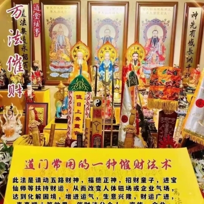 道门中常用的一种催财法术,此法乃是请动五路财神,福德正神,招财童子,进宝仙师等仙师扶持财运,从而改变人体磁场或企业气场,达到化解困境,增进运气,生意兴隆,财运广进,事事顺心等效果。一般七天即可见效,催财法分个人、家族、企业。人生一世,所有的外在条件都属于辅助,此法有助运扶持的效果,不可心存不劳而获的想法,只可用于正道正途之事业,否则法不灵验,切记切记。