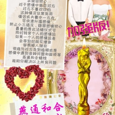 最重的是此法蜡仪式可同时转变个人的感情运,如果一个人的感情运差,会导致烂桃花增多,容易被人抛弃,很难与对方走到婚姻或是感情中遇到各种问题和麻烦等