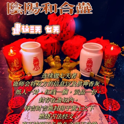 阴阳合婚蛊,蛊师傅将两人照片放入蛊内封蛊。师傅说,照片一定要用红绳把两人绑住,然后进行加持。