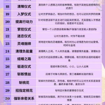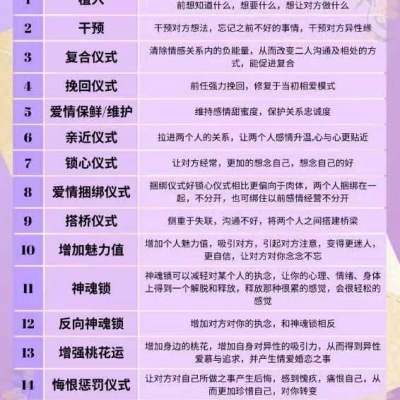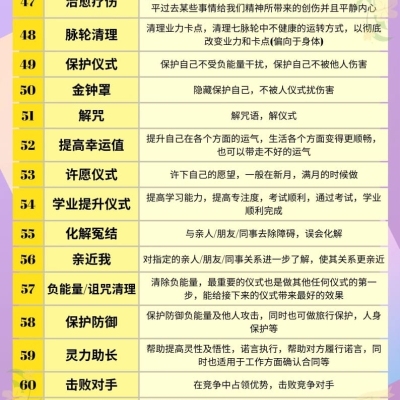 ❤️🔥每项预定仪式的客户可从1-62项目录中🪄选两种功效同时进行❤️🔥