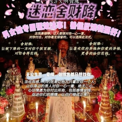 此法可让爱你的人或你喜爱你的人,更舍的给你花钱,并且是心甘情愿的!是种开水喉的法事。像开水喉给你大大的钱财!此法也有绑人心的效果让他人只喜欢你一个人,让你身边的男人对你一心一意,绝无二心,心甘情愿为你付出所有,包括感情金钱,促进你们的感情,让你们修成正果!无论生意,爱情,做销售都只想找你。