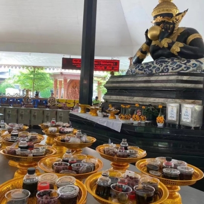 这里每天来拜拉胡‬许愿的泰国人络络不绝,周未更是挤都挤不进去。