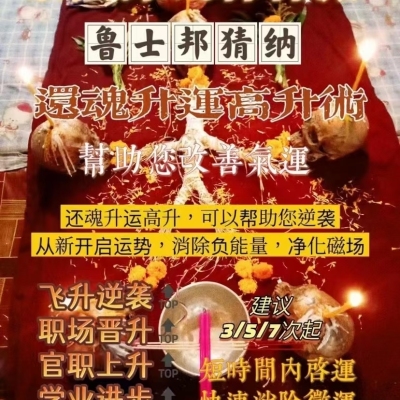 有的人做事运气和财运比较差,事情做起来总是差那么一点 点,这个时候这个法事就可以帮你补其,让你财运,事业运,升职运,官 运,都好起来,让财富主动找上门来, 用的是古法,古法把财源注入你的命格 里面,同时让你事事如意,运用古老珐 门打开财门!谈生意成功,做事顺利, 买卖不断,招揽客源,成单不断,增加 生意事业,投资,去霉运,提升运势, 不好的事情运离泥,转运,挡小人师傅 说这个法门只有厉害的地方就是巨招 财!在注入财源,让命中不带财之人, 财源马上好起来!!