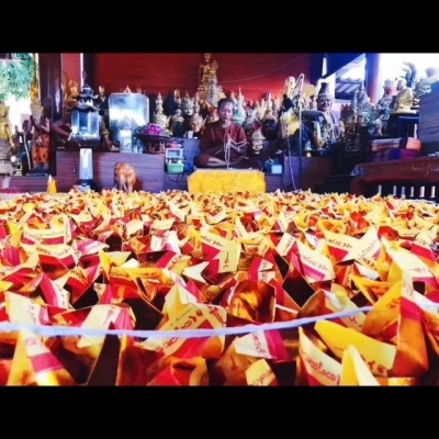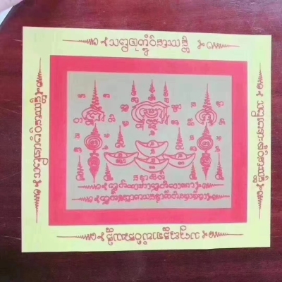 而装金元宝的“金桶”是经过阿赞佑师傅亲自裁剪折叠出来,绘上招财经文,加持7天再使用的。